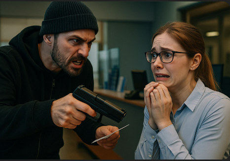 의아한 직원은 고개를 갸우뚱하면서 쪽지를 펼쳐 보았는데… 그걸보자 두눈이 큼지막하게 커졌습니다..... 쪽지에는 다름 아닌 "내 주머니에는 총이있다. 죽고싶지않으면 아무소리내지말고 금고열어 돈꺼내와!"라고 적혀 있었던 겁니다.