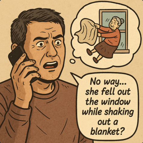“말도 안되는 소리... 아니, 이불을 털다가 떨어져 죽다니. 정말 덜떨어진 사람 아니야?