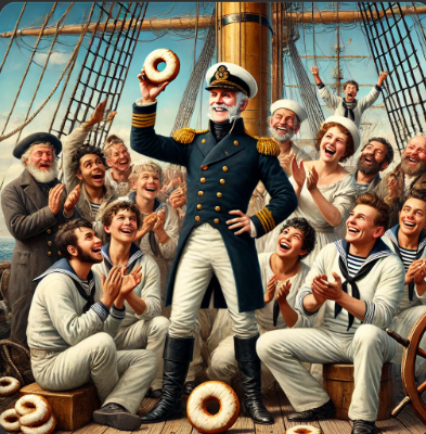 선원들은 입을 모아 말했죠. "이거 진짜 좋다!" 🍰👍 순식간에 배 안에서 **'선장의 도넛'**이 유행처럼 번졌습니다. 심지어 **"도넛 구멍"**까지 별도로 나눠 먹으며 "이게 바로 최적의 식감이다!" 극찬했대요. 🍩😋 메인 주의 항구 도시에서부터 **"구멍 뚫린 도넛"**이 서서히 입소문을 타기 시작했어요.